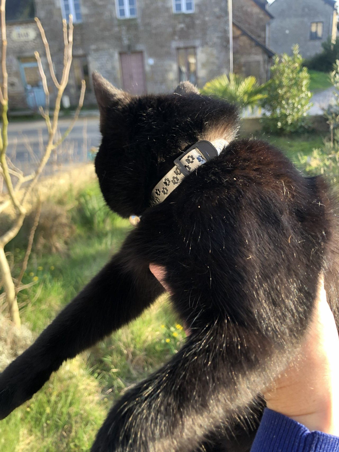 CHAT NOIR EN DIVAGATION DANS LE BOURG