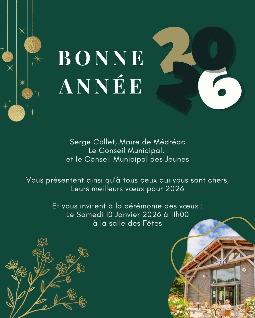 La municipalité de Médréac vous souhaite une année remplie de santé, de bonheur, de projets et de beaux moments partagés 🤍